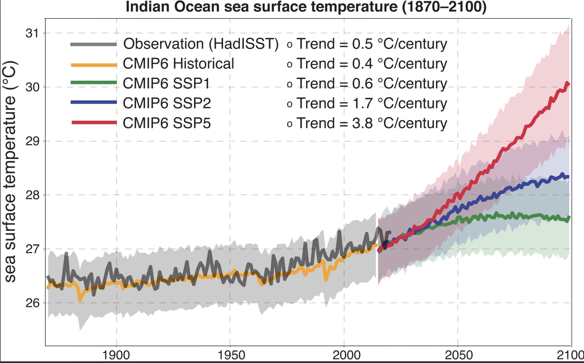 Figure 1 – Warming of the tropical Indian Ocean under different emissions pathways